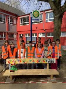 Auf unserem Schulhof gibt es jetzt ein ganz besonderes Möbelstück – unsere neue Freundebank! Gebaut wurde sie von einer Werkstatt, die uns dieses tolle Projekt ermöglicht hat. Die Bank hat einen festen Platz mitten auf dem Pausenhof gefunden und lädt alle Kinder dazu ein, Platz zu nehmen, wenn sie in der Pause gerade niemanden zum Spielen haben. So können andere Kinder sofort sehen: Hier wird ein Freund gesucht! – und gemeinsam kann das Spielen, Lachen und Entdecken weitergehen.