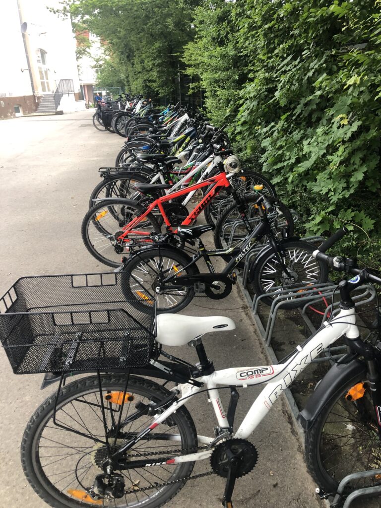 52 Fahrrähder waren heute zum Start des Schulradelns auf dem Schulholf geparkt.
