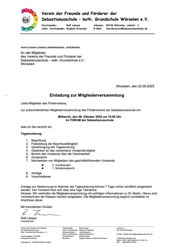 Einladung außerordentliche Mitgliederversammlung am 08.10.2025