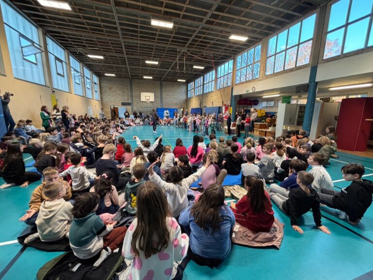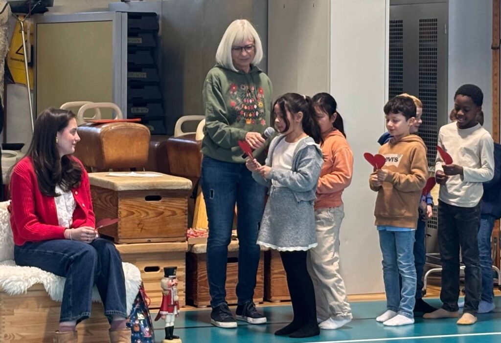 „Wir sagen euch an den lieben Advent…“ , „Wir tagen dein Licht“, „Jingle bells“ und „Du bist der Weihnachtsmann“ – so tönte es am Montag, 15. Dezember 2025 beim Schultreff durch die Sporthalle. Die Lieder, mit denen der Projektchor schon bereits im Seniorenheim für Freude gesorgt hatte, wurden unter der Leitung von Frau Goerenz angestimmt und mit Begeisterung von der Schulgemeinde aufgenommen und mitgesungen.